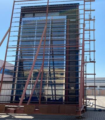 · The test area should be at least three glass bays wide and at least one full floor height preferably 2 full floors, providing sufficient test area to incorporates all the junction details and maximum spans between fixed points for structural analysis during testing.